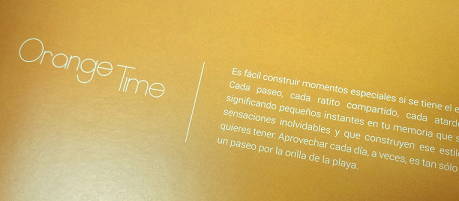 El catálogo que presenta los pisos en playa de San Juan, se divide en cuatro apartado, uno por cada concepto y color que os recordamos son: Blue views, Yellow Society, Orange time y Red dreams.